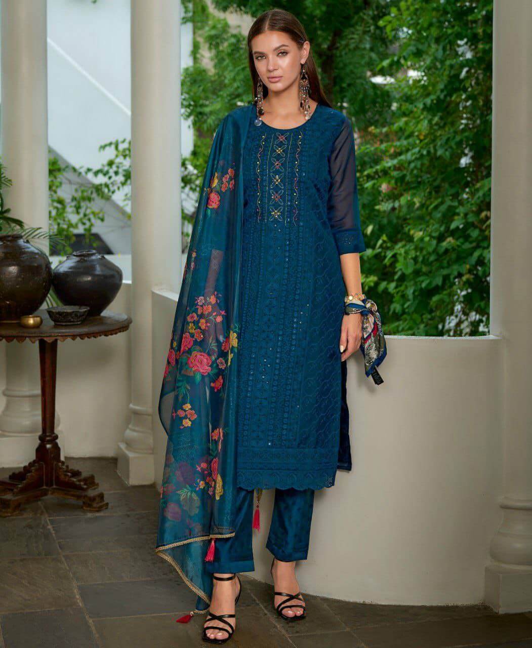 KURTI FABRIC : Organza with Chanderi Silk Lining